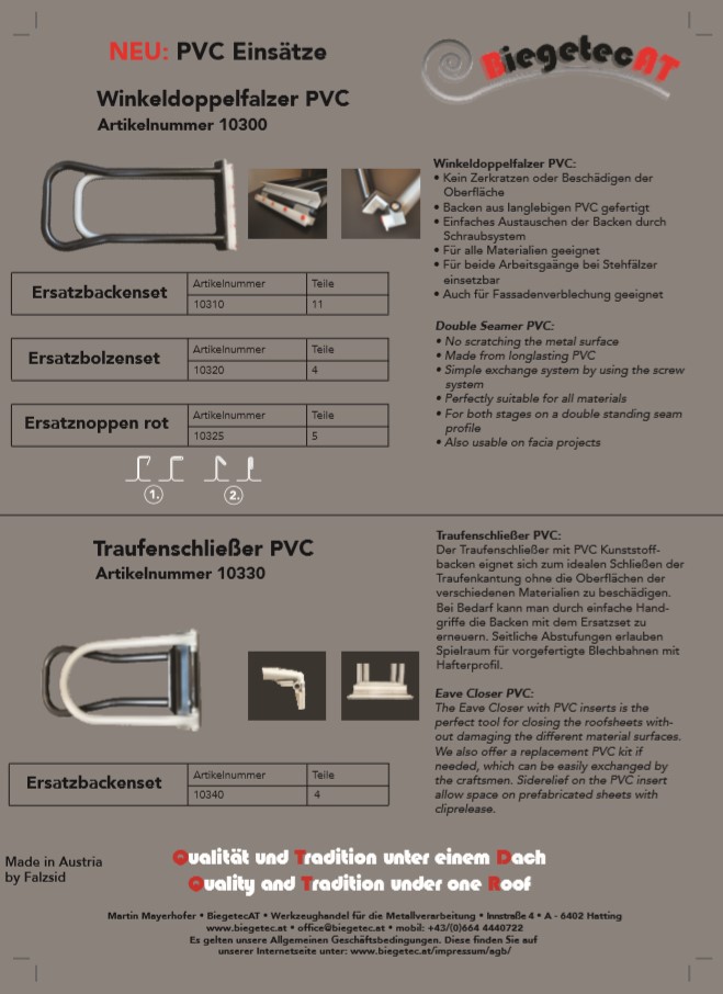 Weitere Preise und Infos zu BIEGETEC Produkten auf Anfrage bitte per Email an info@spenglertv.de